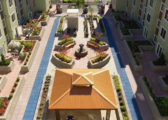 - Exterior features: A busy calendar of daily social activities, Barbecue, Business Center, Conference Room, Electric vehicle charging station, Electricity included in rent, Fountains, terraced courtyards and rooftop social areas, Game Room, Garbage included in rent, Garden, Gas included in rent, Gazebo, Heating included in rent, Heating: Electric, High-speed Internet Ready, Hot water included in rent, Lush landscaping with rooftop dog run, perfect for pets!, On-Site Management, One Year Lease, Online Maintenance Portal, Online Rent Payment, Over 55, Package Receiving, Party Room, Pet Park, Picnic Area, Professional, live-in management, Rooftop Deck, Sewage included in rent, Shuffleboard, Six Month Lease, TV Lounge, Theater, Utilities included are water, sewer and gas, View Type: City, View Type: Mountain, View Type: Park, Water included in rent