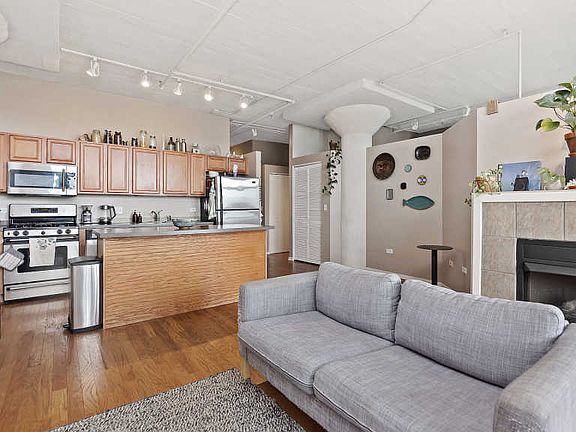 Spacious 1 bed, 1 bath + den loft in University Village Lofts with lots of natural light & hardwood floors. Modern living & entertaining is a breeze in open living+kitchen concept with fireplace to cozy up in winter and south facing balcony for summer relaxing & grilling. Kitchen features stainless steel appliances, large island, and ample cabinets. Plentiful storage with bedroom walk in closet, hall closet + linen closet. Access to sizeable bathroom from hallway and bedroom with floor to ceiling windows. Washer & dryer in unit and central air. Building is pet friendly with conveniences of gym, storage locker, bike storage & heated indoor parking INCLUDED. Assessments include cable and internet. Enjoy a quiet, well-manicured courtyard building entry and surround. Blocks from local dining/bars/stores, public transportation, parks, UIC, Medical District, South Loop, and Pilsen. Come see your new home today!