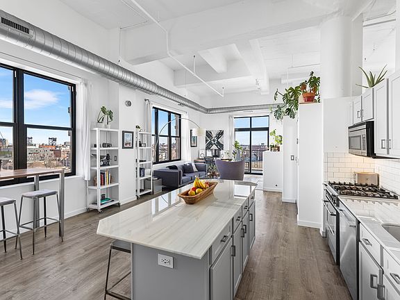 Historic corner 2B2B loft overlooking the Chicago skyline and Pilsen featuring nearly 20 foot ceilings, 14 windows, Gas Fireplace, Private Balcony, In-Unit Washer/Dryer, Fisher & Paykel appliances including convection oven/microwave combo and professional duel fuel range, and a double vanity primary bathroom with a 72" tub. Fully furnished with a King bed in primary bedroom and Full in secondary bedroom. One block away from the UIC athletic fields, CTA bus stop, and Halsted Metra station. Nearby retail & dining includes 18th street in Pilsen, Taylor street in Little Italy, or Halsted street in University Village. This is your opportunity to live in a piece of Pilsen's industrial past as this building was originally built as cold storage for the nearby railroad and wholesale produce markets.