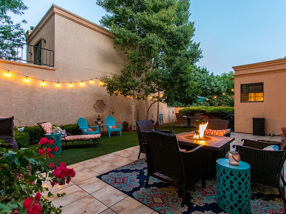Stunning Spanish-Style home on Colonial Park golf course with amazing outdoor living! Lush courtyards with golf course & water views! Soaring entry ceilings w/iron chandelier and hardwoods. Grand living room w/ gas fireplace and gorgeous views! Custom kitchen w/ KitchenAid appliances, 6 burner gas cooktop, new dishwasher & built-in wine fridge. Powder room & laundry room w/sink & storage off entry. First floor master boasts TWO en-suite baths & two walk-in closets. Spacious upstairs bedrooms w/ balconies & a large bathroom w/ double sinks, vanity, separate tub/shower. Loft features a gorgeous built-in desk, beamed ceiling and sitting area. Fresh paint throughout interior, updated fixtures and new carpet from the stairs up make this home move in ready! Modified Bitumen Membrane Roof in 2015, re-sealed in 2018. Both heating units replaced in the past 2 years. Don't miss this rare oasis in Clovis!