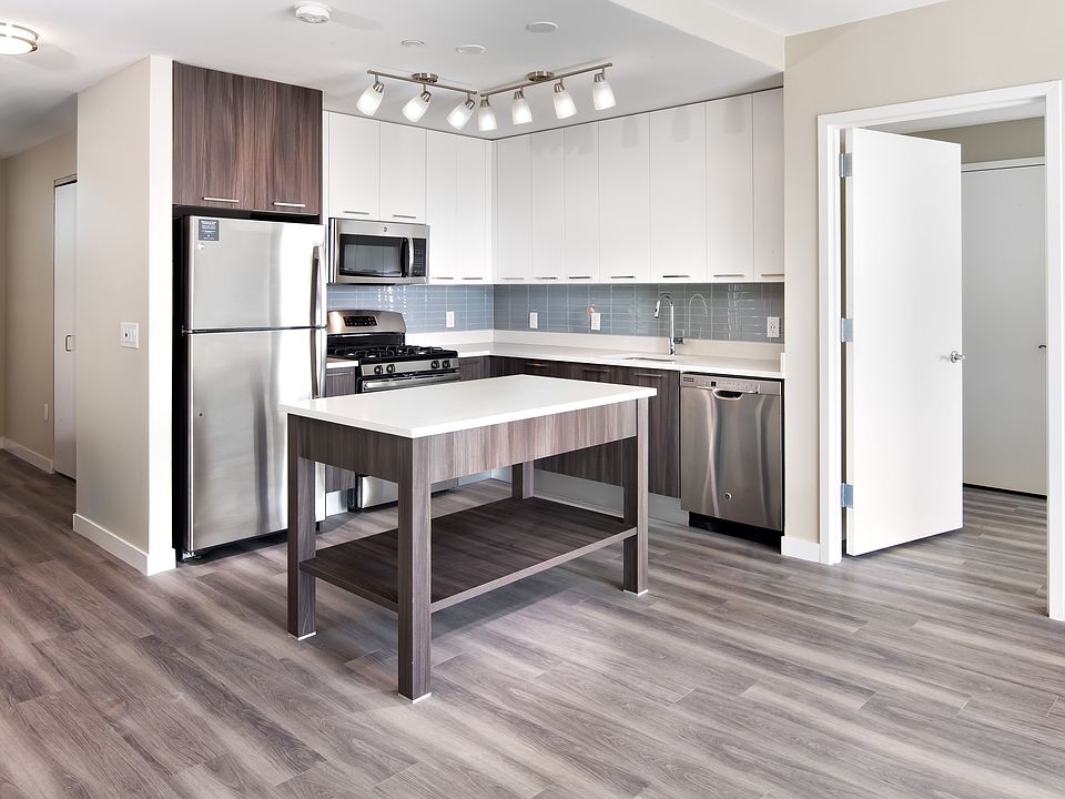 - Updated kitchens with modern cabinetry and stainless steel appliances