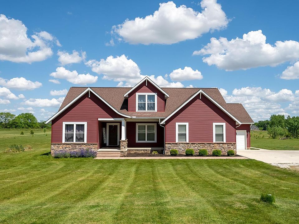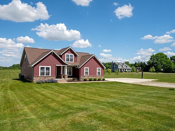 TWILIGHT OPEN HOUSE TUES 6/20/23 FROM 5-7 PM! Country living...city close in BV School District! This beautiful and spacious custom-built cape cod is situated on 5+ acres just minutes from downtown Delaware and offers 2800+ sq. ft., 4 BR's (2 up/2 down), w/1st flr primary suite, 3 full baths, den/optional 4th BR and convenient 1st flr laundry! The 1st floor features an open concept w/vaulted great room open to kitchen/dining areas. Other amenities include LVP flooring, Amish-made cabinets in kitchen w/beadboard accents, upgraded Bosch appliances, full unfinished basement, covered front porch, rear patio to enjoy Summer days/nights, 3-car garage (2 bay side load, 3rd bay front load extra deep tandem (15 X 30), and a basketball court w/LED Lighting so you can shoot hoops in the dark!