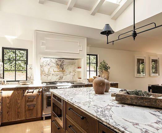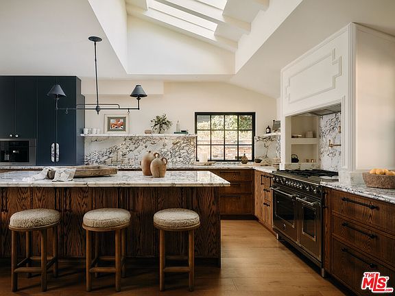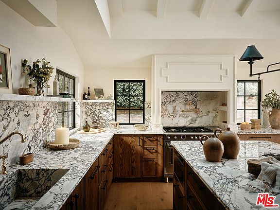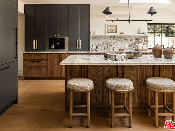 Reimagined by House of Rolison, this gated Sunset Plaza retreat blends historic charm with bold, modern drama, creating a home that feels both curated and effortless. Set securely behind gates and a private brick motor court with ample parking, the residence unfolds in layers of reclaimed materials, heritage details, and contemporary updates that give the home a rare balance of character and ease. The skylit kitchen is a centerpiece, finished in striking Viola marble and custom oak cabinetry, with new, top-of-the-line appliances seamlessly integrated throughout. A custom bar anchors the formal living room, while dining and lounge areas shift between moody and bright, including a warm living space centered on a statement fireplace framed in Delft tile. Upstairs, the secluded primary suite offers a retreat of its own, tucked away to create a sense of privacy and calm. Finished with tailored details and a spa-like bath, it's designed as a personal sanctuary above the city. Each of the home's four bedrooms includes its own en suite bathroom, with a total of five baths providing both comfort and privacy for family and guests. A rare lower-level basement provides additional storage or utility space, a practical bonus in the Hollywood Hills. Outdoors, the property is designed for entertaining and everyday living, with a full outdoor kitchen, pool, spa, wood-burning fireplace, and a lower yard surrounded by mature landscaping. This is House of Rolison reimagined living, a home where character is preserved, spaces are elevated, and every detail feels intentional. A rare gated offering in the Hollywood Hills, 1524 Sunset Plaza stands as both a sanctuary above the city and a showcase of design-driven living, just minutes from the Sunset Strip.