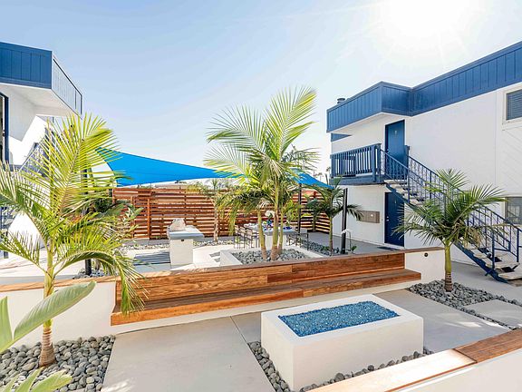 Located on a quiet street in the heart of Pacific Beach, just a few blocks to the beach and bay, this 2 bed 2 bath apartment has 850 sq ft, remodeled kitchen with all new appliances, large screen TV, and central AC. The newly renovated courtyard has firepit, BBQ and lots of seating under the shade. This property has 4 apartments and 4 townhouses (two stories, 50% larger in square footage) with availability starting 1/25/2023. 1-6 month lease that can extend month to month