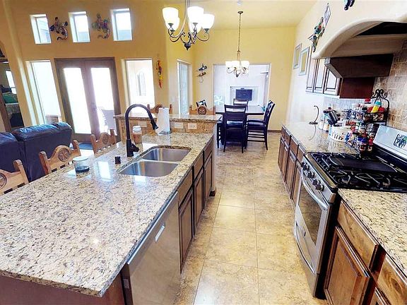 Check out this custom built home with high ceilings with large open great room for entertaining, bonus room/man cave with wet bar, and a spacious back patio/out door kitchen. This home has custom cabinets with granite counter tops and lots of decorative tile work throughout that you must see. Home boasts stainless appliances w/ gas stove, dark stained wood doors and trim that give this home that Tuscany feel. New landscaping in back yard with green grass for the kids/pets. Over sized double garage. Do not miss out on this beautiful home in newer north neighborhood in Hobbs! Seller will pay up to $3000 in closing costs with reasonable offer. Schedule your appointment today!