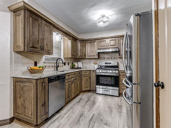 Welcome to 1524 Wilshire Ave – beautifully updated and ideally located just minutes from the OU campus! This 3-bedroom, 2-bath home offers 1,536 sq ft of thoughtfully designed living space in a highly convenient location near I-35 and Highway 9. Step inside to a brand-new kitchen featuring custom cabinetry, stunning granite countertops, travertine backsplash, and granite window sills. Vinyl wood flooring flows throughout the entire home—no carpet to worry about! The spacious living room features a handsome brick fireplace with gas logs and a built-in bookshelf, creating a cozy yet functional centerpiece. A second front living area offers flexible space—perfect for a home office, study, or additional sitting room. The oversized primary suite includes a walk-in closet and private en-suite bath. Two additional bedrooms are generously sized and share a large, updated hall bathroom. Step outside to a HUGE, fully fenced backyard—your private retreat with a covered patio, ideal for outdoor living and entertaining. Enjoy peace of mind with a less-than-one-year-old HVAC system, which qualifies this home for a sizable discount on homeowners insurance. Take advantage of additional storage space with the 16x20 backyard shed. Move-in ready and packed with updates, this home combines comfort, style, and unbeatable location. Don’t miss your chance—schedule your private showing today!