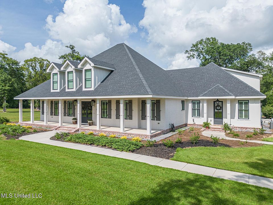 Come home to Karen Road in Biloxi, MS and discover elegant Southern charm at its finest! This beautiful home was built in 2022 and rests on 15 gated acres. You will think you are living on the pages of Southern Living magazine with the graceful front porch with heart of pine ceilings that welcomes you into this stunning property. The living area is open to the kitchen and the dining area and creates a space just waiting for your friends and family to enjoy. The living room features a gas log fireplace and stunning polished concrete flooring. If you love to cook, this kitchen is for you! Prep work is easy in the large butler's pantry as you prepare meals on the GE Monogram appliances, including a 6-burner gas stovetop.. The kitchen also features a large commercial refrigerator. Oh, and the center island is a showstopper! Everyone will gather around this gorgeous centerpiece that also features a beverage drawer and a pebble ice machine. Custom plantation shutters adorn the entire back of the house as you venture outside from the spacious indoor living area to enjoy two more gathering spaces - all of it covered and connected. There is a cozy porch featuring another, more modern fireplace. Walking along the veranda you'll find yourself in a huge 900sq ft outdoor kitchen that is absolutely built for hosting! This home has plenty of room for a family, including a multi-generational option with a full mother-in-law/guest suite that features a kitchenette, handicap-accessible walk-in tub, and its own private entrance from a dedicated porch. The primary suite is a dream with tray ceilings, more plantation shutters, and a luxurious spa-like bath with a large walk-in shower, soaking tub with elegant chandelier, and two separate vanities. And make sure you check out the huge closet that's an organizer's dream! There is a third bedroom downstairs with an ensuite bath along with a huge bonus room upstairs that could be a bedroom or media room with a full bath. In addition to all the bedrooms, this home also has a dedicated office off the front entrance hall and a large laundry room off the kitchen hallway. And you can rest easy knowing all these features are connected to a Generac whole house generator! As enchanting as the home is, it's the gorgeous property that will leave you speechless. This home sits in the middle of 15 acres, most of which is cleared, creating a beautiful yard to enjoy. There is a 6-stall covered barn/shed for storing your tractor, boat, RV, cars, or any other toys you care to accumulate! Enjoy the serenity of the country on 15 acres while being just a little over 6 miles north of the Promenade shopping area. All of this in a home that's only 3 years young! Matterport 3D tour coming soon! Call your favorite agent for more information about this unique property!