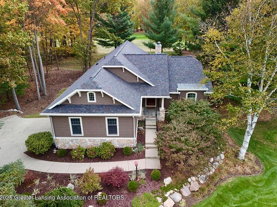 15241 Classic Drive, perched up on a hill on over half an acre in the Landings of Hawk Hollow, this one of a kind home has been admired by many over the years. The gorgeous custom front door sets the scene of special builder touches that include wood paneled ceilings, a sophisticated foyer, custom built wood cabinets and a butcher block island, a stone fireplace, a wine cellar you couldn't possibly fill, and more! The living area and large screened porch look out to the expansive backyard and golf course. Frequent wildlife visitors give you more than just golfers to watch. The primary suite is set off the front hallway for privacy from the main living areas and other bedrooms. It opens up to one of two back deck/patio areas. There are three other bedrooms in the home, one on the other side of the main level and two in the lower level, any of which would work for another use such as an office. The kitchen is truly a chef's dream with a commercial style range and hood, an additional oven in the island, hidden drawers, a pantry that could house endless dry goods, and island seating for those who just watch the cooking. The furnace was replaced in 2018 and the roof is brand new this Fall! Association fees include lawn care, snow removal, trash, open/close of irrigation, and golf course discounts and privileges. This very special, custom built home is awaiting new owners to appreciate its beauty and quality of workmanship. Please reach out to listing agent for more information or to schedule a showing.
