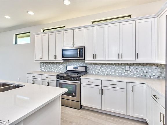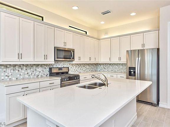 luxury twin villa home offers 3-bedrooms, 3-bathrooms, a separate dining room, 2-car garage, screen-enclosed lanai with a lake view and a summer kitchen, and your own personal gated entry courtyard! Move-in ready with white cabinets and white granite countertop and an immense center island for entertaining, stainless steel appliances, with carpets in the bedrooms and tile flooring throughout the rest of the home. The crisp, clean simple color palette invites you to add your personal touches to make it your Home Sweet Home. Amenities include an onsite fitness center, community pool, pool house, and sidewalks for morning and evening strolls through the community! Agents please use Showingtime.