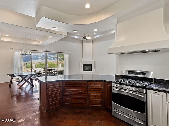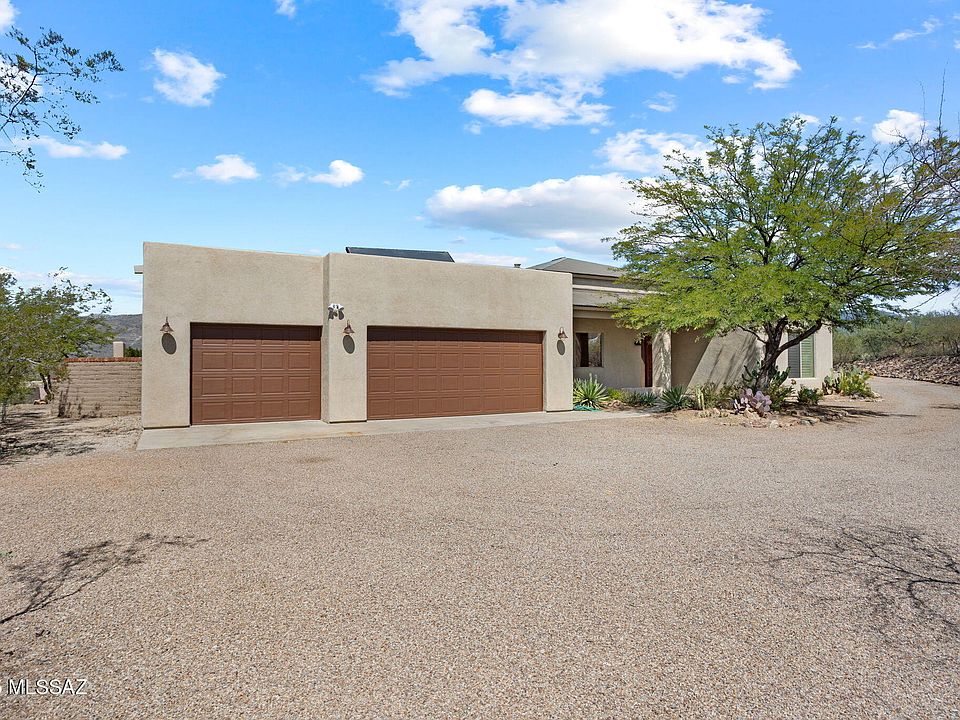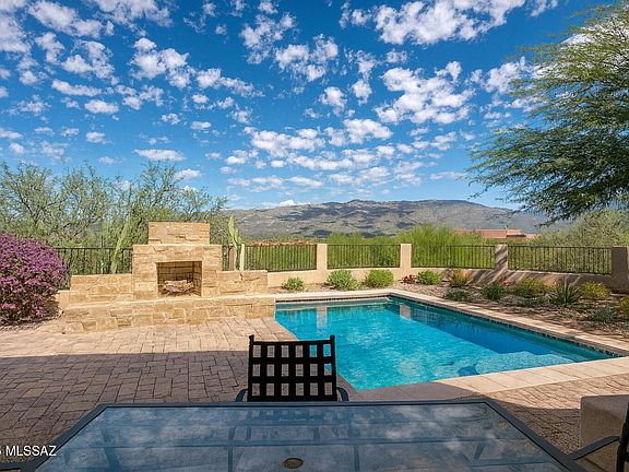 This thoughtfully designed home offers peace, privacy, and a strong connection to the outdoors. 3 Bedrooms & Bonus room with built-ins. Expansive windows frame stunning mountain and desert views, while the open-concept layout is ideal for everyday living and entertaining. The private primary suite includes patio access, and the split floor plan includes a Jack and Jill bath between secondary bedrooms and a flexible room perfect for an office, gym, or guest space. Outside, enjoy multiple shaded patios, desert landscaping, a tranquil water feature & outdoor shower. A 3-car garage provides additional storage and a solar water heater for efficiency. Located in gated Coyote Creek with equestrian facilities, sports courts, and direct access to scenic trails and Saguaro National Park, WOW!