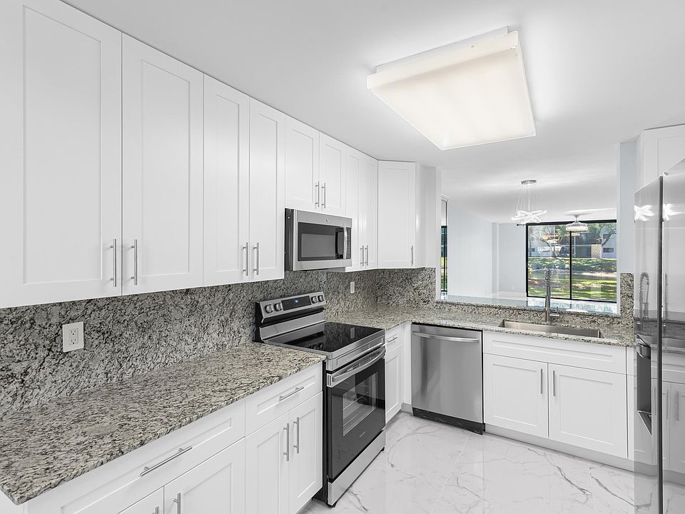 Stunning 2-Bed, 2-Bath Ground-Floor Condo - Lakes of Delray (55+ Community)! This absolutely gorgeous, fully renovated unit features the largest Water's Edge floor plan with breathtaking water views from the living room and master bedroom. Enjoy resort-style living just steps from the satellite pool--walk out your front door and jump right in! Conveniently located near the residential Sims Road entrance for easy access. Move-in ready with no assessments (all paid for brand-new roof), a passed structural milestone inspection, and fully funded reserves. The chef's kitchen boasts top-of-the-line stainless steel appliances, white shaker cabinets, granite countertops & backsplash, plus a large pantry with eat-in space, making it perfect for cooking and entertaining. The open-concept living and dining area offers a spacious and inviting atmosphere, ideal for hosting friends and family. The stunning white porcelain tile throughout adds elegance, while the large bedrooms and updated bathrooms ensure comfort for both owners and guests. Additional upgrades include a new 2020 HVAC, hot water heater, and updated electric panel. All this in an active 55+ community offering a resort-style clubhouse, Olympic-sized pool, multiple satellite pools, tennis & pickleball courts, fitness center, billiards, library, shuffleboard, bocce ball, theater, walking trails, BBQ areas, and countless clubs and social activities. Perfectly located near major highways, top hospitals, places of worship, and just minutes from shopping, dining, and the vibrant attractions of downtown Delray Beach. This is the perfect home for both relaxation and entertainingschedule your private showing today!