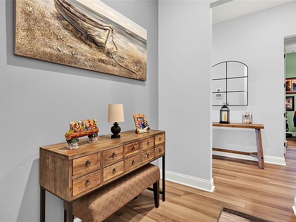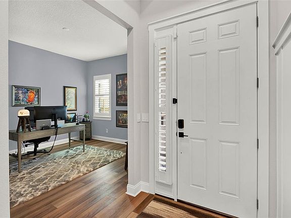 Welcome to this exceptional luxury home in the highly sought-after Osprey Ranch community, where modern living meets cutting-edge technology. Built in 2024, this stunning 4-bedroom, 3.5-bathroom residence offers 3,225 square feet of meticulously designed space, combining comfort with sophistication. Set on a spacious 50-foot lot, enjoy breathtaking water views from nearly every room, including the gourmet kitchen featuring top-of-the-line appliances, custom cabinetry, and a sprawling quartz island perfect for entertaining. The open-concept layout seamlessly flows into the inviting living areas and out to the covered lanai, where panoramic water views create the perfect backdrop for Florida’s stunning sunsets. This home is equipped with high-end finishes, including plantation shutters, motorized blinds, custom closet organizers, decorative wall panels, and epoxy garage flooring. Notice the home showcases a design inspired by modern farmhouse aesthetics with luxury vinyl Almond Oak flooring throughout. Advanced smart home systems enhance convenience, security, and entertainment throughout the space. The primary suite, along with two additional bedrooms, are conveniently located on the first floor. Upstairs, you'll discover a spacious loft, currently transformed into the ultimate media room, perfect for relaxation and entertainment. The home is fully equipped for a tech-savvy lifestyle, with integrated network systems, wired surveillance cameras, and premium smart devices, ensuring ease and efficiency at every turn. Nestled in a community offering resort-style amenities such as a playground, dog park, upcoming community pool and cabana, and scenic walking and biking trails, this home is just minutes from downtown Winter Garden, Horizon West, and a variety of world-class dining and shopping options. With quick access to major roads, top-rated schools, and Walt Disney Theme Parks, you’re in the heart of Central Florida’s most desirable locations. This is more than just a home; it’s a lifestyle. Don’t miss this rare opportunity to own a completed luxury residence in one of Winter Garden’s most coveted neighborhoods. Schedule your private tour today!