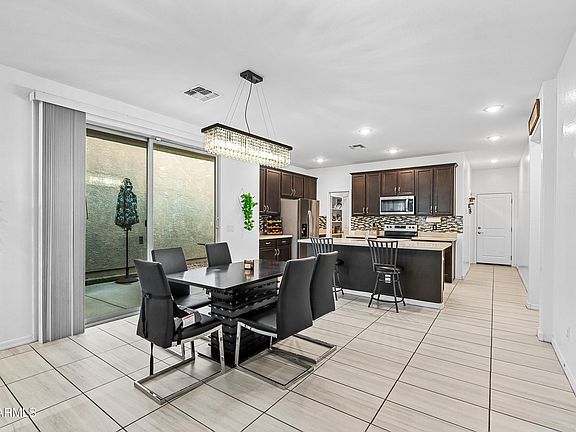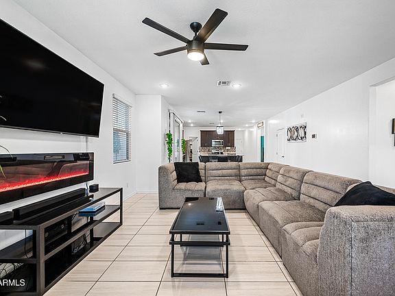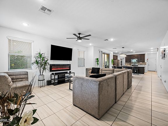 Welcome to this beautiful 3-bedroom, 2-bath home in the desirable Centerra community—better than new and completely move-in ready! Offering nearly 2,000 sq. ft. of thoughtfully designed living space, this home features a modern split floor plan with spacious bedrooms, wood-look tile flooring, quartz countertops, and stainless steel appliances. The kitchen opens to a bright living area and provides easy access to the 2-car garage and generous storage options throughout. Enjoy a low-maintenance backyard perfect for relaxing or entertaining. Centerra residents also enjoy access to community parks, a sparkling pool, scenic walking trails, and dog parks. Ideally located near shopping, dining, spring training facilities, and convenient freeway access—this home truly has it all!