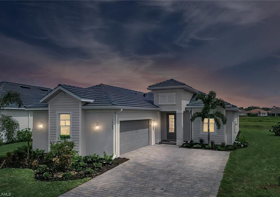 Welcome to your Florida dream home in Heritage Landing Golf & Country Club! This brand-new construction by Lennar is the final opportunity to own a non-golf home with a social membership included in this highly sought-after resort-style community. Featuring the Victoria floorplan 2 bedrooms + den, 2.5 bathrooms, and 1,850 sq ft of thoughtfully designed living space, this single-story residence blends modern design with functional luxury. The open-concept layout seamlessly connects the kitchen, dining, and Great Room—perfect for entertaining or relaxing—while large sliding glass doors extend the living space to a covered lanai overlooking the backyard. The spacious owner’s suite is privately tucked away and boasts a spa-like ensuite bathroom and generous walk-in closet. A flexible den near the entry provides the perfect space for a home office or guest retreat, positioned next to a full bath for added convenience. Additional highlights include a 2-car garage, granite countertops, designer cabinetry, stainless steel appliances, and impact-resistant windows. Located in Heritage Landing, residents enjoy access to resort amenities including a resort-style pool, full-service spa, fitness center, tennis and pickleball courts, walking trails, clubhouse, and more—all included with the social membership. Golf membership is not included, allowing for lower fees and greater lifestyle flexibility. Heritage Landing offers a lifestyle of unparalleled luxury. Immerse yourself in the resort-style pool with its gentle entry and invigorating lap lanes, savor exquisite dining experiences at three on-site restaurants including a breezy poolside café, and indulge in wellness at the full-service spa. Engage in spirited matches on tennis, pickleball, and bocce courts, or find your rhythm in the aerobics studio. With serene marinas, protected nature preserves, and the sparkling Gulf Coast just minutes away, Heritage Landing is not just a community — it’s a dream come true, where every day feels like a perfect getaway. This home comes with a social membership, granting access to all community amenities except golf during the peak season.