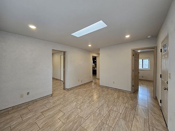 This fully updated two-bedroom home/casita is centrally located in Santa Fe, offering comfort and convenience in a gated property. Step through the charming front portal into a bright living space featuring modern tile flooring throughout and a skylight that fills the room with natural light. The beautifully updated kitchen comes equipped with an electric stove/range, dishwasher, and refrigerator. Both bedrooms include closets, while the three-quarter bathroom features a stunning tiled walk-in shower. Mini split air conditioning and heat in each room ensures year-round comfort, and a new stackable washer and dryer adds everyday practicality. Pets considered. Brant Goodman, Qualifying Broker.