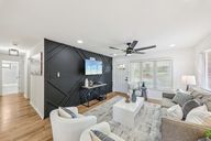 Built-in electric fireplaceSleek quartz countertopsQuiet tree-lined streetCovered porchGenerous additional living spaceHigh-impact designStylish bar