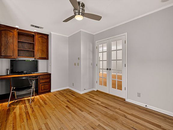 It has a beautiful gourmet kitchen with a large island, barstools, wine frig, 2 ovens, 6 burner WOLF range, laundry room and lovely salt water pool. Quiet backyard and street. OWNED solar so electric bills are VERY low. There are ceiling fans in every room. This home also has a 'whole house' fan which reduces A/C usage in the summer. There is a one car carport in the back off of the alley and easy parking in the front of the house. The detached garage in the far back of the property is also available for 1 car.