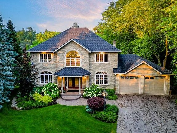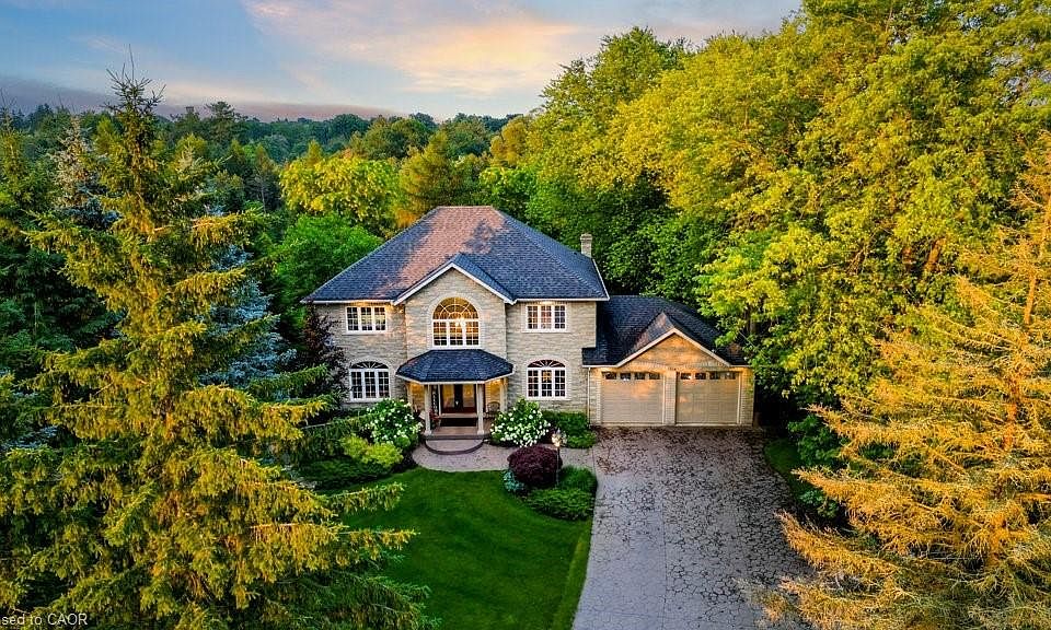 This stunning stone home, nestled on a mature treed lot in Cambridge, is made for life’s biggest moments. Step through the grand double doors into a welcoming foyer with soaring ceilings and natural light pouring in—you feel it right away: there’s room to breathe here. The main floor flows effortlessly for everyday living or hosting everyone you love. A spacious kitchen and breakfast nook open onto a massive deck with a fire pit, BBQ zone, and a hot tub ready for starry nights. Morning coffee, summer dinners, late-night laughs—this backyard is ready for it all. Inside, there’s space for every generation. Multiple family rooms let everyone spread out. A bright office gives you a quiet place to work. Downstairs, the finished basement offers a rec room, bar, gym, bedroom, and bath—perfect for teens, in-laws, or overnight guests. Upstairs, the primary suite is your private retreat with big windows, a walk-in closet, and a spa bath with a soaking tub that’s perfect for winding down. With over 5,000 sq.?ft. of finished living space, there’s room for big family dinners, holiday sleepovers, and cozy Sundays at home. The double garage and spacious driveway make parking easy. When it’s time to get out, Whistle Bear Golf Club is just minutes away for your Sunday tee time, and quick access to Hwy 401 keeps you connected to KW, Guelph, and the GTA. This is where families grow, friends gather, and memories last. Book your tour—this one won’t wait.