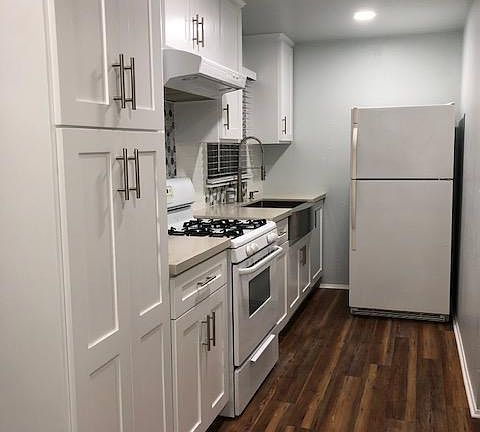 Rear unit. Newly remodeled, new appliances and in unit washer and dryer. 1 car garage included. Shared yard and semi private balcony. 1 block walk to the beach, a must see!