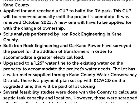 design for a 22 space upscale RV park. The Village is a pivot point for the Grand Circle of Nat'l Parks. 2.28 ac of pine-cov'd, level land backs to Dixie Nat'l Forest