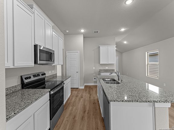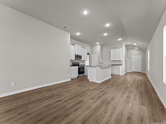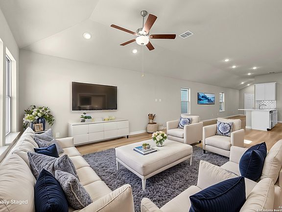 ***READY NOW*** Welcome to 1525 Golden Wheat, a thoughtfully designed single-story home in the Meadows at Clear Springs community of New Braunfels, TX. With 1,495 square feet, this home features 3 bedrooms, 2 full bathrooms, and a 2-car garage-offering a functional layout that fits a variety of lifestyles. Inside, the open-concept living space seamlessly connects the kitchen, dining area, and family room, creating a warm and welcoming environment for everyday living and entertaining. The kitchen features an island and sleek white cabinets. The private owner's suite at the rear of the home boasts a beautiful bay window that adds both natural light and architectural charm, along with a walk-in closet and an en-suite bathroom with a dual-sink vanity for comfort and convenience. Step outside to enjoy a covered patio that's perfect for relaxing evenings or weekend gatherings.