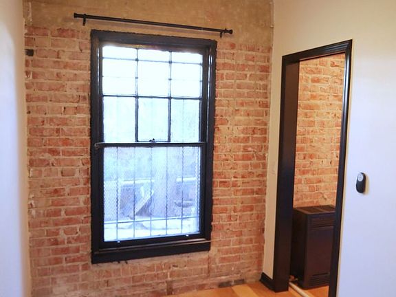 Bright courtyardLarge walk in closetExposed brickRed brick buildingRecessed lightingNew gas stoveNew kitchen
