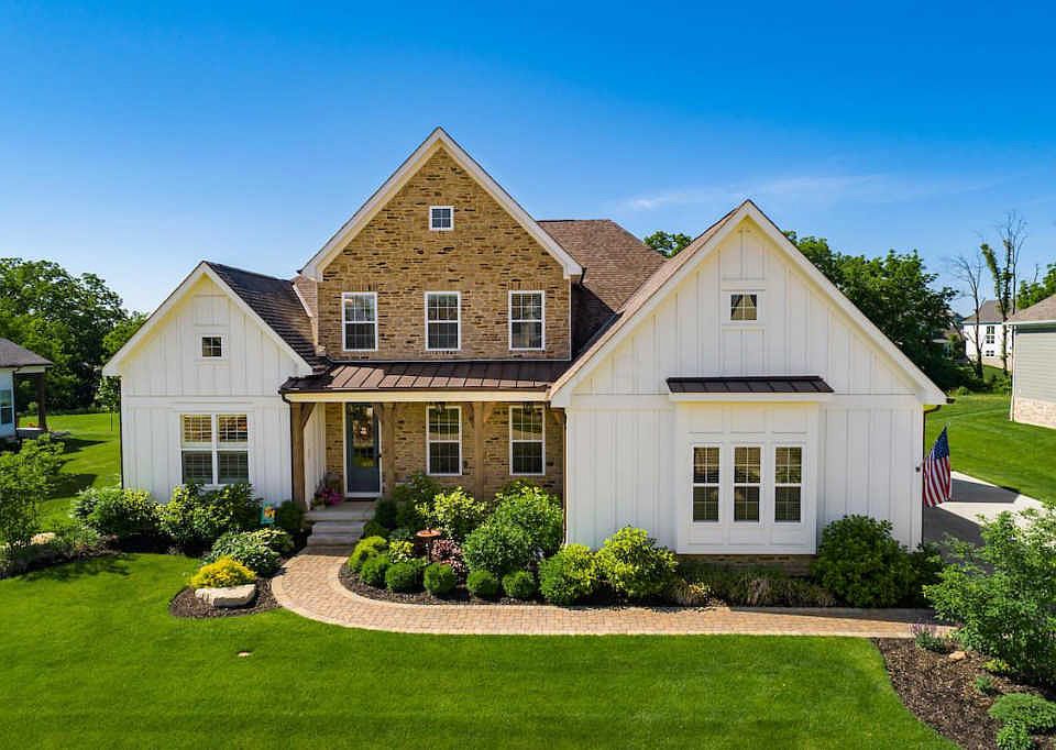 Farmhouse Style Home on Great Lot Backing to Wooded Reserve Area. First Floor Master Suite with Over Sized Shower, His and Hers Closets, and Custom Vanities. Huge Gourmet Kitchen with 10 Ft Quartz Island with Farmhouse Sink and Hidden Pantry. First Floor Guest Room, 11-12 ft Ceilings in Great Room & Kitchen. High End Finishes Throughout Including Reclaimed Wood Materials, Reclaimed Tin Roof on Porch, Barn Doors, Designer Light Fixtures, Shiplap Interior Walls and Ceiling, Extensive Ceiling Treatments. Second Floor Suite. Fantastic Lower Level with Bar Area, Rec Area, Workout Area, and Theater Room with 132 inch Screen. Custom Laundry. Mudroom with Brick Floor and Metal Mesh Hanging Closet. Great Outdoor Living Areas, Extensive Landscaping.