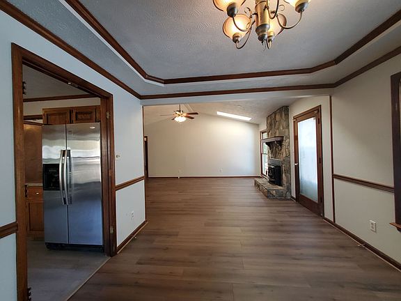 Trey ceilingsVaulted ceilingFenced backyardStunning laminate flooringClosets in each bedroomWoodstove insertLots of cabinets