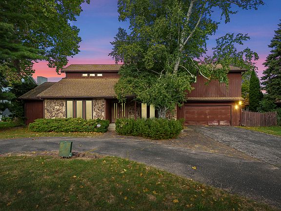 Waterfront on St. Joseph River - 105' Frontage with Boat Slip & Lift, Direct Lake Michigan Access! This .4-acre contemporary home offers a 20 ft. retaining wall and private boat lift, providing easy river access to Lake Michigan. The 4 bedroom, 2.5 bath residence is an opportunity with generous square footage, multiple living spaces, and water views throughout. Features include cedar siding, sunken living room with wood-burning fireplace, balcony, and a 2002 addition over the garage. The flexible layout includes 2 main floor bedrooms with 1.5 baths, plus two primary suites (one up, one down), with the upper primary featuring a slider to a private deck and a sunken tub. Other highlights: 2 HVAC systems (one new in 2025), 2 AC units, commercial fridge/freezer in the garage that stay, upper pool table room, ceiling hoist, and accessible crawl space. Surrounded by high-value homes, this property offers prime river frontage and ready for your vision.