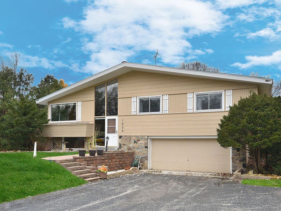 Elmbrook School System. Contemporary w/ a generous marble foyer and floating stairs to the expansive living room/dining room featuring a copper topped fireplace & Bookshelf. Large open space also includes the dining room with BICC overlooking the beautiful yard. Kitchen features an abundance of cabinets and a full package of appliances, skylight to bring in the morning sun. Master Suite and two additional large bedrooms complete the main level. Lower level features the Family Room w/ another fireplace with lannon stone ledge with heated floor and a small trickling pond. Extra large garage w/ plenty of room for a workbench and more. Lovely yard with gardening shed and patio. This well maintained home is ready for you.