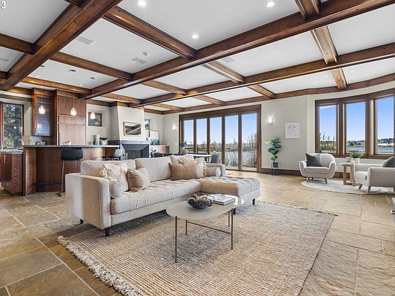 The Columbia Riverfront Lifestyle awaits! This home is worth far more than this list price, but seller wants it sold NOW. Incredible opportunity to take advantage of our shifted market. This is a custom-built dream home. Steel framed 5 Beds/5.5 Baths. 6310 SqFt of Living Space, 2380sqft of Garage/Shop w/heated, epoxy floors & built-in cabinets. Steel enforced boat dock can accommodate 60-foot yacht plus multiple smaller boats & water toys. Includes 1,500 lbs crane lift, water, power, WiFi cable TV & house phone lines at dock. Two 50 amp/250 volts hookups for powering yachts. Dock rope light, 75-foot ramp with LED lights. Elevator access for 3 levels of living. Chefs? kitchen w/twin Wolf gas/convection ovens, Wolf 6 burner 16k BTU gas cooktop w/griddle and pot filler, full size Sub-Zero refrigerator, warmer drawer, twin Bosch stainless steel dishwashers, prep sink w/disposal, large, air-conditioned pantry. Heated slate floors. Quarter sawn solid cherry wood cabinets. Main floor laundry/mud/prep room w/refrigerator/freezer, full bath, and side access doors. Outdoor/Indoor living space w/20ft glass roll up door. Media/Game room w/custom Bathos Studios glass bar w/marble counters, Sub-Zero under-counter fridge/freezer, sink w/disposal, Bosch dishwasher, gas fireplace & heated, distressed wood floors. Primary suite glass tile spa bath w/Mr. Steam shower, heated travertine floors & under vanity lighting. Marble countered dual vanity w/heated mirrors. Coffee/bar nook w/Sub-Zero under-counter fridge/freezer. Reinforced steel deck off primary bath w/private hot tub, 400sqft closet w/built-in island dresser, cedar lining & washer/dryer. High-end rollout out Milgard windows throughout. 50-year tile roof. Lutron quiet & remote-controlled blackout shades. Terraced landscaping w/sprinklers & more. [Home Energy Score = 3. HES Report at https://rpt.greenbuildingregistry.com/hes/OR10041133]