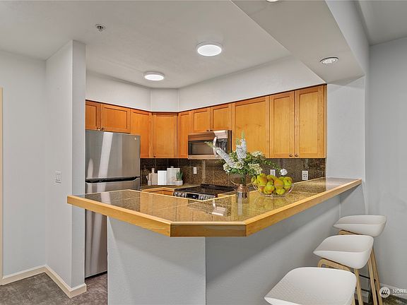 Welcome to your new home in the heart of Ballard! This 1 bed, 1 bath condominium offers a serene private balcony, an outdoor pool, and stunning panoramic views from the rooftop deck. Inside, enjoy a cozy fireplace, in-unit washer/dryer, and new stainless steel appliances. The modern interior design features spacious living areas and private balcony surrounded by lush foliage year round. The building provides the added convenience of a concierge and includes 1 dedicated parking space. With Ballard's thriving music scene, popular venues on Ballard Avenue, and the year-round farmers market just a short strikk away, this is urban living at its best. Don't miss out on this opportunity to make Ballard your new home sweet home!