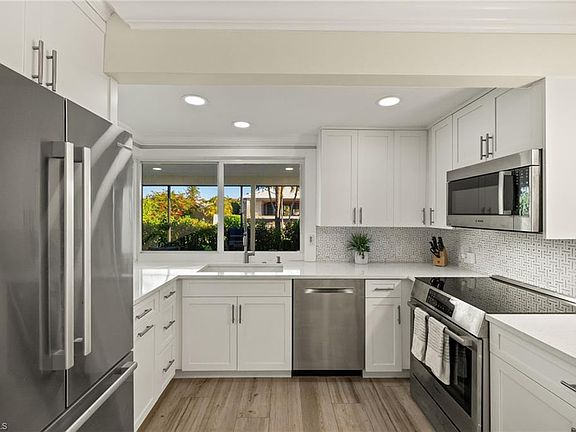 Welcome to 1525 Osprey Avenue in desirable Golden Shores, which is next to Royal Harbor on the water. Easy access to the Gulf of America, located on a lovely and quiet cul-de-sac. A boater's dream! This home features a newer dock and 16k lb boat slip! Walking distance to Naples Bay Resort which has a gym, restaurant and much more. Gorgeous views and quick access to Naples Bay and the Gulf. Easy walk, bike ride or golf cart ride to downtown Naples renowned worldwide for its fine, dining, shopping and beaches. Easy access to Naples and Fort Myers airports. A great value for this lovely and very popular neighborhood. This fully renovated 4 Bedroom/2 Bath canal front home features a large living room with a wall of glass opening to outdoor screened-in living area seamlessly blending indoor/outdoor living. All new “impact” window and sliders. New hurricane rated front door and insulated garage door. Eat-in kitchen with stainless steel appliances, white shaker cabinetry, white quartz counters and breakfast bar plus dining room which also opens out to patio is ideal for entertaining. Master suite features a spacious bedroom plus en-suite bathroom. 3 guest bedrooms plus hall bath perfect for guest quarters, home office, media room or home gym and 2-car attached garage. 6 year old medal roof which is certified for 24 more years! Beautifully landscaped yard is perfect for dog lovers or family and friend get togethers.