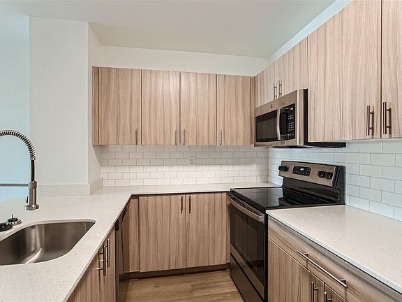 - Exterior features: Bicycle storage, Close to Portland Streetcar, Controlled Access/Gated, On-site Retail, Parcel Lockers, Private Balconies and Patios*, Quartz Countertops with Tile Backsplash*, Resident Rewards Program, Stainless Steel Appliances*