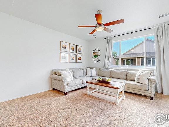 This house has a wonderful and spacious open floor plan with 4 bedrooms and 3 baths. Make this house feel like your own! Remodel and redecorate even though it looks like a model now! It has a new roof, new interior paint and new exterior paint! Walk in the front door to a bright and roomy entry with a living room/office off the kitchen. The vaulted ceiling kitchen has great natural light, many cabinets, an island with seating and a dining area. A second living area is just off the kitchen with a bedroom and full bathroom conveniently located for guests. The laundry room is big enough to actually do laundry and is located next to three bedrooms. All those rooms and there is still an unfinished basement. The garage has an extra large tandem for bike and toy storage plus a built in workbench. The backyard is fully fenced and has a concrete patio for entertaining. The backyard also has three raised garden beds, an apple and peach tree and a sprinkler system. There is a playground down the street and gorgeous views as you drive into the neighborhood. No Metro tax. This home has been loved, shows like a model home and is a gem! Close to TPC golf course and is a great location between Loveland and Berthoud.