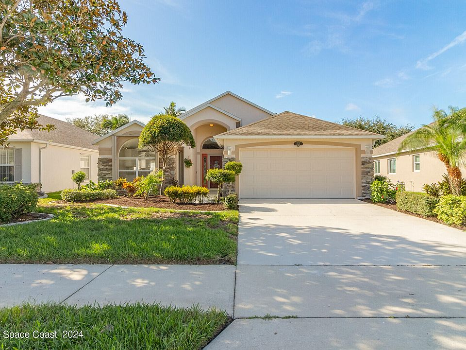 Beautiful updated waterfront home located in the gated community of Grand Isle. (55+) This is a highly desirable neighborhood located off of Viera Blvd. and close to up-scale shopping and restaurants in West Viera. This home is on a natural lake and has gorgeous lake views from almost any room. Chateau floor plan features an open concept split plan with a large living area, large eat in kitchen & spacious dining room large enough for a formal set.Primary bedroom and bath include a large tub & shower, private commode area and a large walk in closet. Two additional bedrooms and a bath with an exterior door complete the home. This home has been updated to include new cabinets and granite in kitchen and baths, freshly painted inside and out, new toilets, lighting, outlets and more.Roof 2015, AC 2017. HOA covers lawn & landscaping, irrigation and exterior house painting.Meticulously maintained clubhouse and heated pool and spa. Enjoy pickleball, tennis, bocce, a gym and social activities.