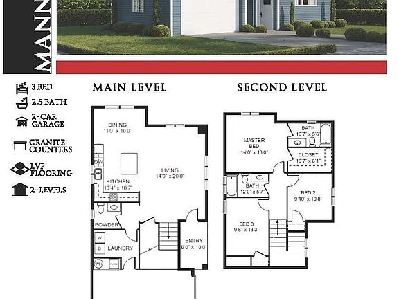 - Breakfast Bar, Pantry, Granite Counters, Number of Baths Upper Level: 2