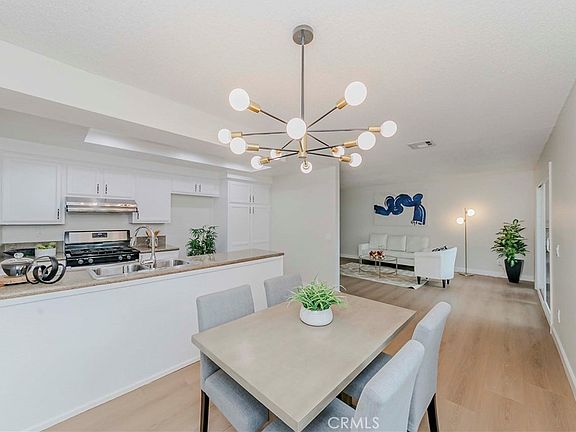 Remodeled 2 BR, 2 BA condo with open view. The home includes new laminated flooring with soundproof padding, dual-pane windows and sliding doors, bathroom vanities with fixtures, and fresh interior paint. The HVAC system and garbage disposal were replaced in 2024, and the water heater is newer. The modern kitchen offers recessed lighting, white-cabinets, granite countertops, and stainless steel appliances. Both bedrooms feature mirrored closet doors and LED ceiling lights. HOA dues ($385) cover master insurance, water, trash, and sewer, with access to the community pool and laundry. Located on a premium corner lot next to the common area with no shared walls, the home also comes with a 1-car garage and plenty of overnight street parking. Ready for immediate move-in. Conveniently close to top schools, parks, and with easy access to the 57 and 60 freeways. All Furniture is included, excluding decorative items without value.