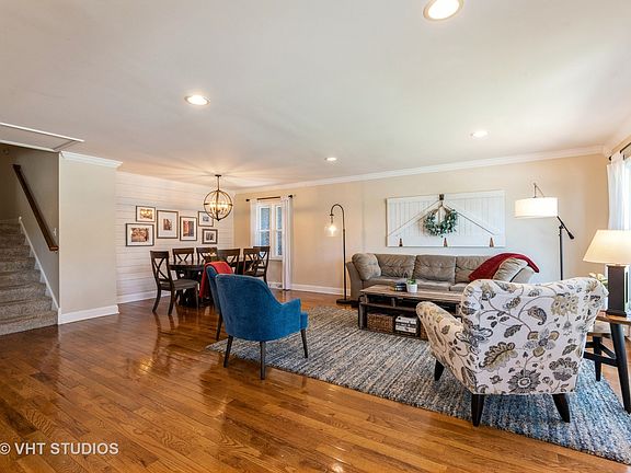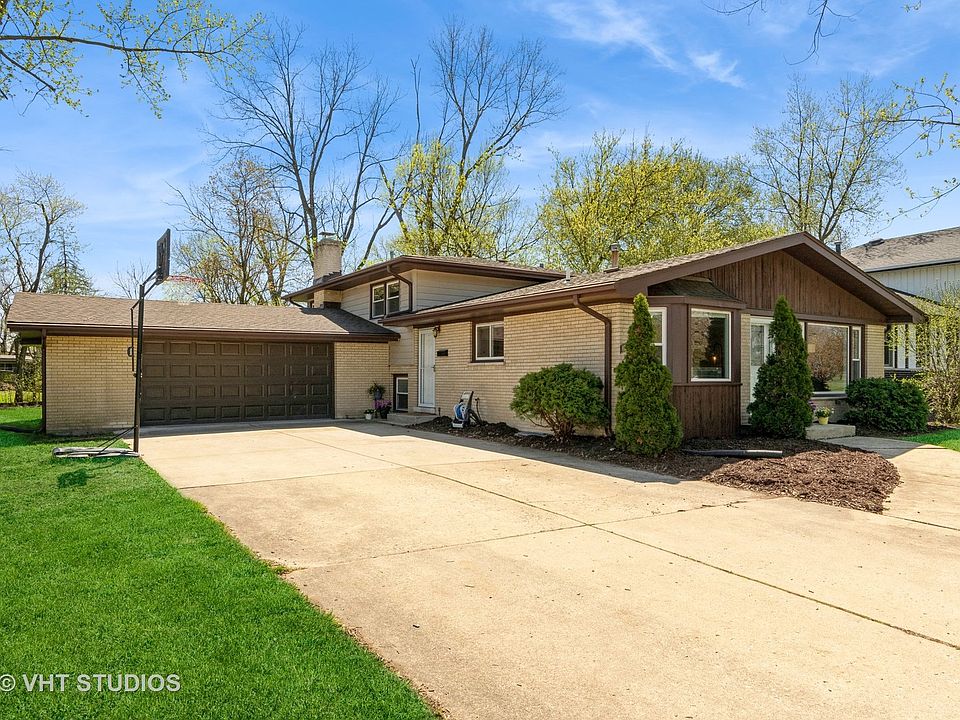 Phenomenal 4-bedroom, 3-bathroom Quad-level Home on a beautiful lot with mature trees across the street from Indian Trail Park, close to the Metra and Highways (I-294, I-80), and nestled between several country clubs (Ravisloe, Idlewild, Flossmoor). * The open-concept main level features a renovated kitchen with stainless steel appliances, granite countertops, stunning shaker-style cabinetry with pull-out drawers, glass backsplash, a three-window alcove with table space, and an island large enough for 4 stools, and a double barn-door pantry. * The separate breakfast nook includes a shiplap feature wall and globe-shaped chandelier, combined with the formal Living Room area with hardwood flooring and views of the park. * The Primary bedroom features a double-door walk-in closet, private elegant bathroom with gray ceramic, and sliding-door access to the 13x13 wood deck. * The lower-level Family Room overlooks the backyard and includes a focal-point fireplace with dual built-in shelving, exposed brick, and space for a dining room table; walk through to the full laundry room with a folding/sorting counter and a door to the back yard; and the fourth bedroom and another updated bathroom are also found on this level. * The finished basement provides flexibility for a recreation room, play room, hobby or workshop space with durable ceramic flooring. * With neutral decor, white trim, approximately 3000 square-feet of finished living space, and a 2+ car garage, this home is offered at a wonderful value.
