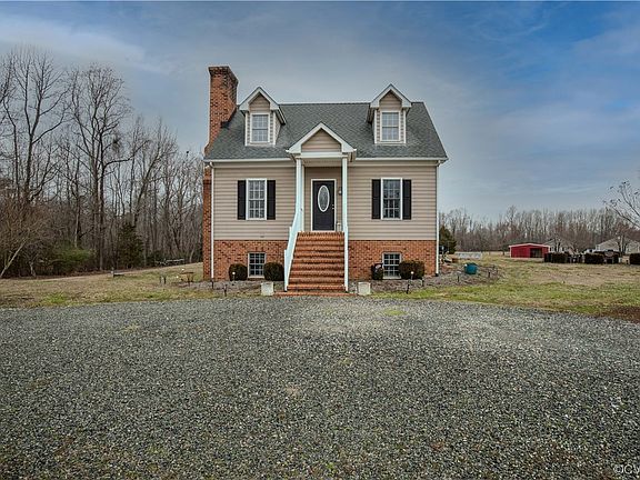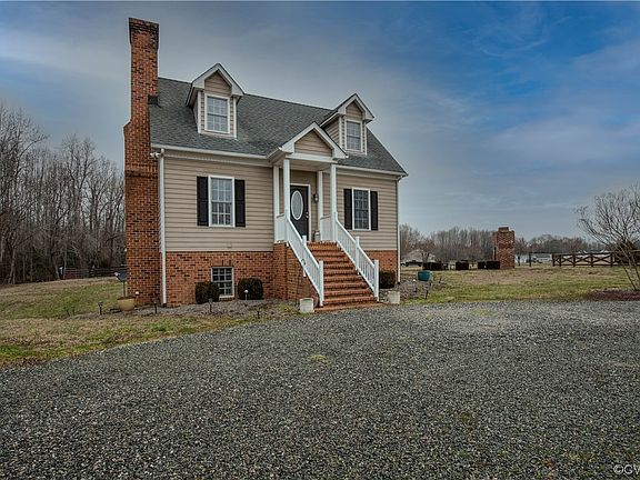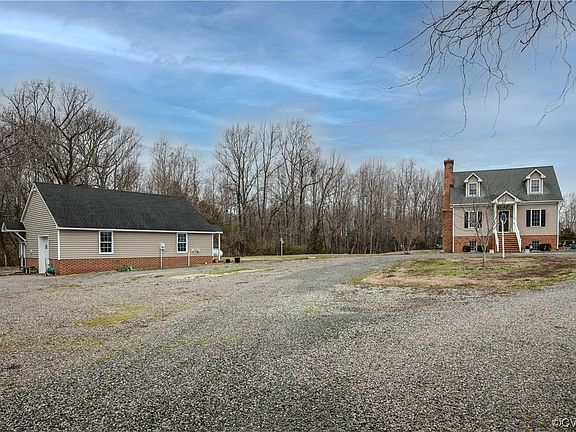 Beautiful 10 acres in the country with lovely Colonial home and farm buildings. This property has everything you need and want, home with 3 bedrooms, 2 1/2 baths, walkout basement,out for a walk or ride.2 car garage/heated workshop, heated hobby cottage, mostly cleared with 2 barns, some wooded with small stream. This is the perfect getaway in Prince George County. The home is great for entertaining with large living space and eat-in kitchen on the first floor with French doors to the screened porch overlooking the wooded area out back. It is a nice easy walk down the steps of the porch to the outdoor brick fireplace for grilling and relaxing. How nice to be able to see the horses from the porch or patio as they graze in the pasture. Walk around to the front to explore the garage with 2 separate spaces, one for vehicles and one conditioned for workshop. Also lots of storage space above, several roll up doors and a pedestrian door. The hobby cottage, also conditioned, has lots of room for hobbies, office, or workout area. Imagine the possibilities. In the home, all the living and entertainment spaces are on the first floor, 2 bedrooms, full bath, laundry/mudroom in walkout basement, primary suite on the second floor with sitting area, large walk in closet, full bath with jetted tub.