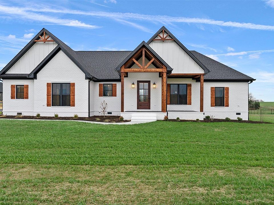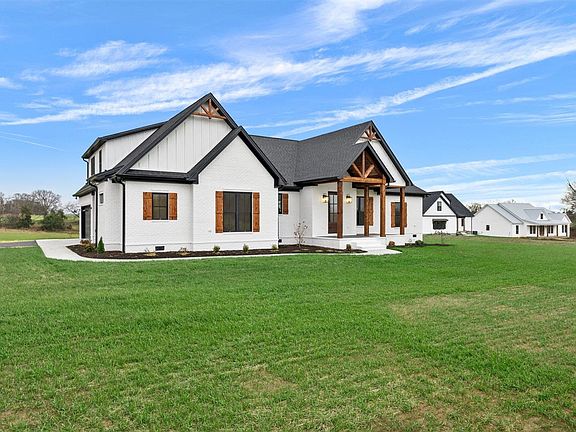 This custom-built home offers something truly special. Set on 2.5 acres (+/-) with peaceful farmland views in both directions, it’s conveniently located just minutes from Bowling Green and I-65 for an easy commute. The main floor includes spacious guest bedrooms and a master suite with a walk-in closet featuring custom shelving. You’ll also find a walk-in pantry, reclaimed barn wood & white washed pine accents, a vented stone fireplace, and a well-equipped kitchen with marble countertops, stainless steel appliances (refrigerator included) and custom cabinets. The laundry room is also designed with an oversized sink, plenty of shelving & cabinet space. The dining area is perfect for entertaining and leads to the covered back patio. Upstairs, there’s a large bonus room, plus a separate walk-out attic (about 720 sq. ft.) that could be converted into additional living space. Outside, the western cedar accents and stamped concrete create a welcoming atmosphere, while the extended back patio is already piped for a gas fire pit. Other thoughtful details include an oversized front door with a multiple-lock system, pre-installed Ring security system, and an electric panel wired for a generator. This home is move-in ready—just waiting for you! Schedule a private tour today. Listing is Lot 1 on the plat.
