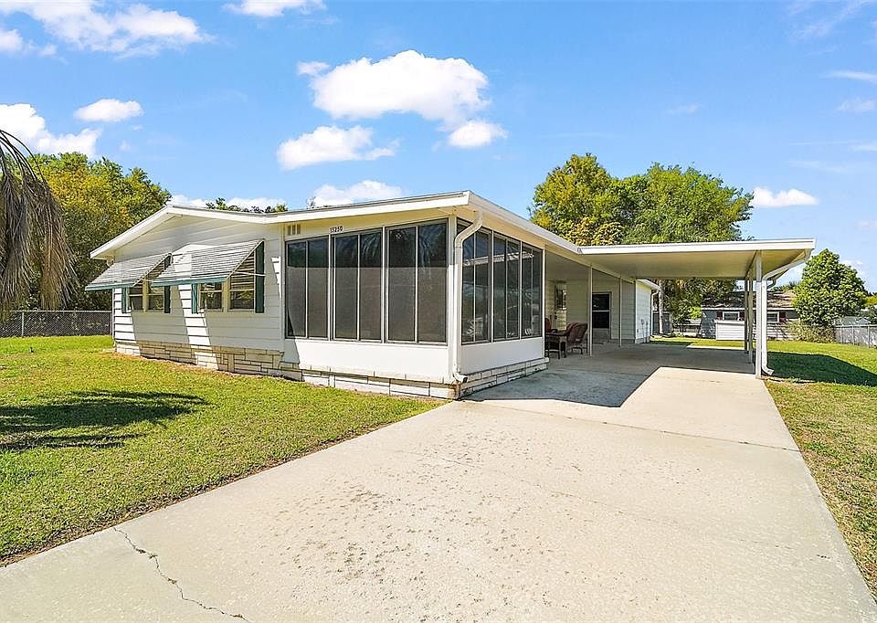 This GENTLY used "Snowbird" home is waiting for its next owners!!!!! Move in ready 2/2 with additional Living Space-BONUS AREA and a Neutral Color Palette throughout. Being Sold TURNKEY(excluding sellers personal items). An Entirely FENCED in Private Yard with 2 SHEDS- one that houses the LAUNDRY area and the other that fits an ENTIRE VEHICLE(items in this shed are excluded from the sale). There is a CARPORT and PORCH area off the side of the home.NEW HT WATER HTR (2025)WATER SOFTENER .The Seller will be providing a ONE YR HOME WARRANTY to the buyer from Broward Factory. NO HOA!!! ALL AGE COMMUNITY.. Close to THE VILLAGES, DINING ,SHOPPING and LAKE WEIR! DON'T LET THIS ONE GET AWAY!! CALL TODAY!
