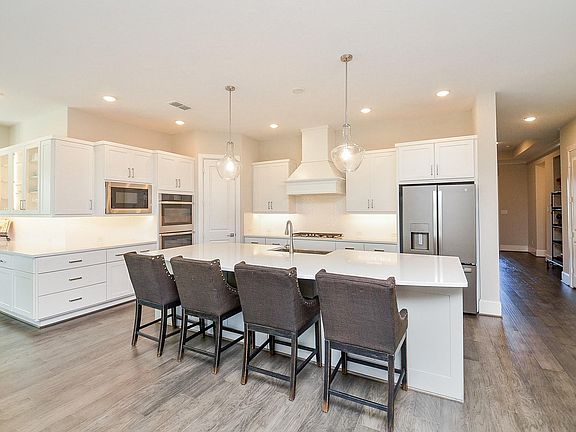 This 1.5 story floor plan has been meticulously cared for. All bedrooms and 3 baths are located on the first floor. Huge game room and 4th full bath is on the second floor. As you enter through the mahogany door w/ privacy glass into foyer, you will immediately notice the high ceilings, crown molding 6" baseboards and rich engineered hardwood flooring flowing from entry throughout the main living rooms, study, kitchen, family, & dining rm. The chef of the family will love making meals in the oversized kitchen w/dbl ovens, 5 burner cooktop, walk-in pantry, quartz counter tops & under cabinet lighting. Primary bedroom has a wall of windows w/pull down shades. Primary bath is spacious w/lots of storage, linen closet, frameless shower. 2 bdrms at front share a full bath. 4th bdrm has ensuite bathrm. Large pool size backyard has extended covered patio w/gas connection. 3 car garage has a "Bronco" back-up battery system. GREAT SCHOOLS, wonderful community amenities. It's a MUST SEE.