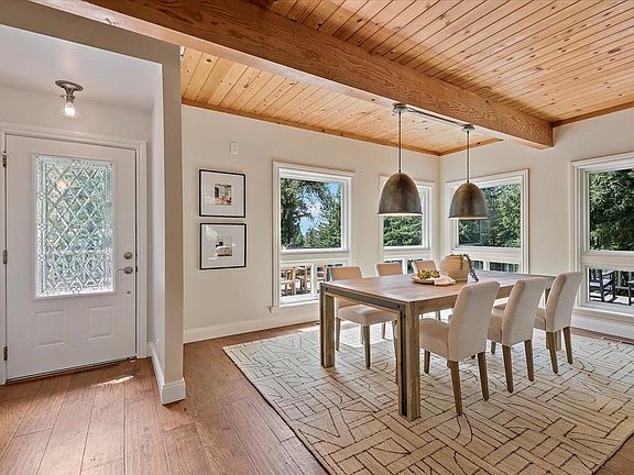 Beautifully updated mountain home enjoying a SUNNY SETTING on 2.5 acres a SHORT 2 MINUTES FROM 17/SUMMIT JUNCTION! Peaceful forest views. **OVER $300K IN INFRASTRUCTURE AND HOME UPGRADES** Large remodeled kitchen with stunning marble look QUARTZ COUNTERS and attractive seated island. Spacious living room with newer HIGH EFFICIENCY WOOD BURNING FIREPLACE and engineered hickory hardwood floors. Generous formal dining room. Main floor primary suite with large organized walk-in closet plus built in closet cabinetry. Upper floor LOFT/FAMILY ROOM. LARGE BONUS ROOM/MEDIA ROOM. OPEN BEAM CEILINGS. Skylights. Solar shades. Huge basement storage and workshop area plus 4 exterior sheds. Huge WRAPAROUND DECK. Gently sloping meadow. Newer heating/AC. Upgraded electrical and water pipes. Newer GENERATOR. Water softener and filtration system. Chicken coop, playhouse and bee hives. Ridge Mutual Water. Private rood Association. FIREWISE NEIGHBORHOOD. Starlink. Newer HotTub. Newly painted inside and out. New carpet. New flat roof.