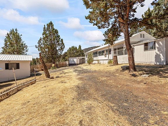 Great recreational getaway! This 1970 single wide, 2 bedroom, 1 bath with multiple add-ons that could be additional bedrooms, office, or home gym, sits on half an acre at the end of the road. Drink your coffee off the back deck and look at the incredible rock formations, mountains, and scenic terrain. Hop on your dirt bike or quad and ride on public lands right down the street. Store your boat in one of the multiple outbuildings including a covered carport & lg shop w/double doors. Plenty of additional storage with numerous sheds on the property. There is also a little cottage that could be fixed up to a cute accessory structure with 1 bedroom and kitchenette. Property is completely fenced and gated with 2 access driveways. New septic tank was installed in 2022 and home is hooked up to Idleway Community water. Paved roads and only minutes to the Prineville Reservoir for fishing, boating, swimming, and recreating. Come get away from it all,