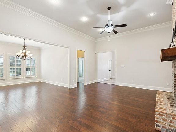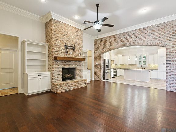 Tucked away in the heart of Renaissance is this 4-Bedroom, 4-Bathroom Acadian-Styled Home offering a 3-way split floor plan designed for comfort and functionality. The open, inviting living area boasts wood flooring, exposed brick walls, and rustic beams. The gourmet kitchen includes a large island, granite countertops, double ovens, a gas cooktop, and a pot filler. Enjoy gatherings in the formal dining room or cozy keeping area. The primary en suite is spacious while the bathroom is a relaxing retreat with double vanities, a soaking tub, a walk-in shower, and a spacious closet. Two additional bedrooms share a full bath, while a private guest suite with a bathroom is ideal for visitors. A dedicated office space can serve as a fifth bedroom. The large bonus room doubles as a mother-in-law suite, home gym, or theater room, complete with a full kitchen, appliances, walk-in closet, and bathroom. The outdoor space is just as impressive featuring a covered patio with a wood-burning fireplace, an extended patio with gas hookup, and a large backyard with a separate side yard and entrance. Conveniently located near shopping, restaurants, and top-rated Ascension Parish schools. Don’t miss this incredible home! Schedule your private tour today!