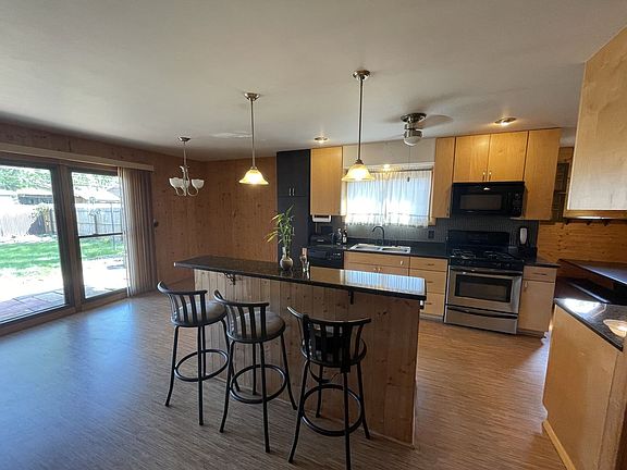 Fabulous open concept on this 3 bedroom, 1 1/2 bath Jolly Homes Ranch with an added bonus of a Family Room! Enter through the covered front porch and walk through the front door, you will feel like you entered a North Woods cabin! Open concept living room, kitchen and dining area~Granite countertops~Loads of custom cabinetry offering soft close doors and drawers ~Huge kitchen island holds up to 4 barstools~Bonus full size freezer~Built in table/booth offering additional seating space~Pendant lighting over island~Master Bedroom offers it's own private half bath~Main bath has a solar tube adding natural light~ Cozy "Bonus" Family Room addition has vaulted ceilings, log cabin walls, and a wood burning fireplace~Sliding patio doors lead to the scenic backyard with private patio areas, fully fenced yard with large shed, 2 sides of fence were installed in 2022~deep 1 and 1/2 car garage~gleaming hardwood laminate flooring throughout-NO carpeting. You will love this home! Estate sale~sold "as-is"
