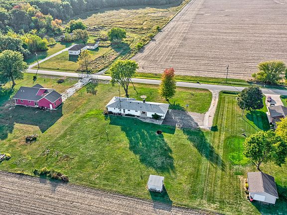 Enjoy country living with this 3 bedroom, 1.5 bath ranch home situated on nearly an acre of land and overlooking the beautiful open farm fields. Inside, find a spacious living room featuring a charming stone gas fireplace. The oversized kitchen is a true highlight, providing a great view of the landscape and offering abundant oak cabinetry, a breakfast bar, table space, a desk nook, and all appliances included, including a built-in double oven. All three bedrooms are generously sized, each with ample closet space, while the primary bedroom includes a private half bath. The main-level full bathroom features a walk-in shower and a large vanity. The full basement adds incredible versatility with a large family room complete with a brick wood-burning fireplace, plus a second kitchen equipped with cabinetry, counters, sink, stove/oven, and refrigerator. A storage room with shelving and a walk-in shower complete the lower level. Additional highlights include an on-demand water heater, water softener, iron filter, reverse osmosis system, and vinyl double-pane windows. Outside, relax under the covered breezeway, host gatherings on the concrete patio, and enjoy the peaceful setting with plenty of open space. The 2 car garage increases the appeal by providing ample parking and additional storage options. Come experience this rural gem for yourself!