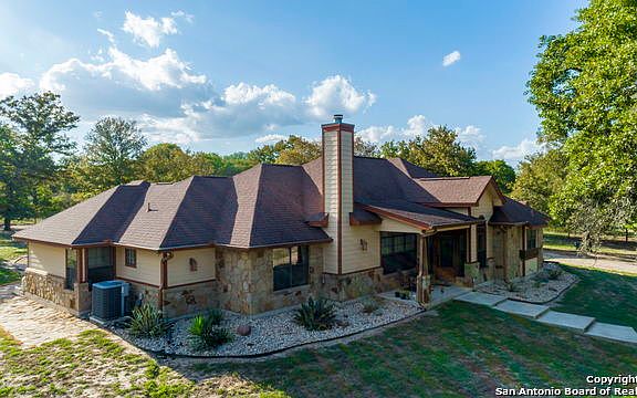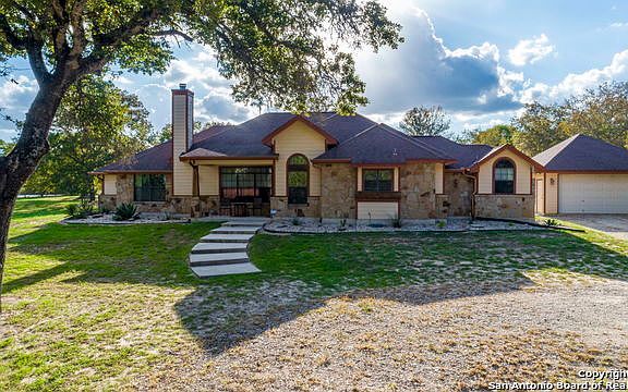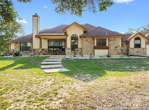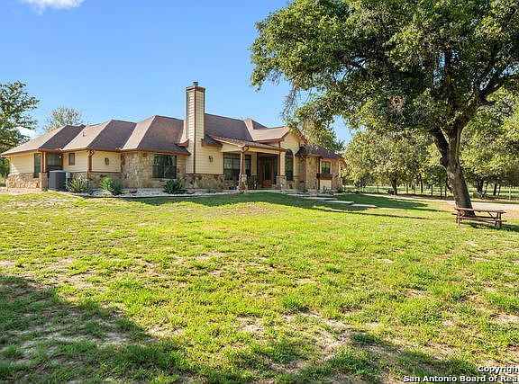 Bring your family to country living on 5 acres with a pool! Beautiful custom home with all the extras for a relaxing quiet neighborhood within 30 minutes to downtown San Antonio. The front 3 acres are around the house then and additional 2 acres behind the fence. The back 2 acres is cross fenced with wooded space for agricultural animals and wildlife. Large lots all around property for wide open space! Large mature trees all across the property.