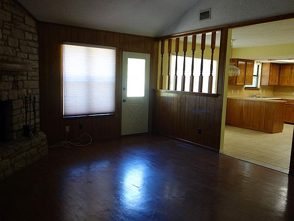 This 3/2 is in a nice neighborhood near IH35. 3 bedrooms, 2 bath, 2 car garage. Corner fireplace in a large living room open to the dining/kitchen area. Freshly painted. Backs up to the old McCoy school. Non refundable pet fee required for each pet.